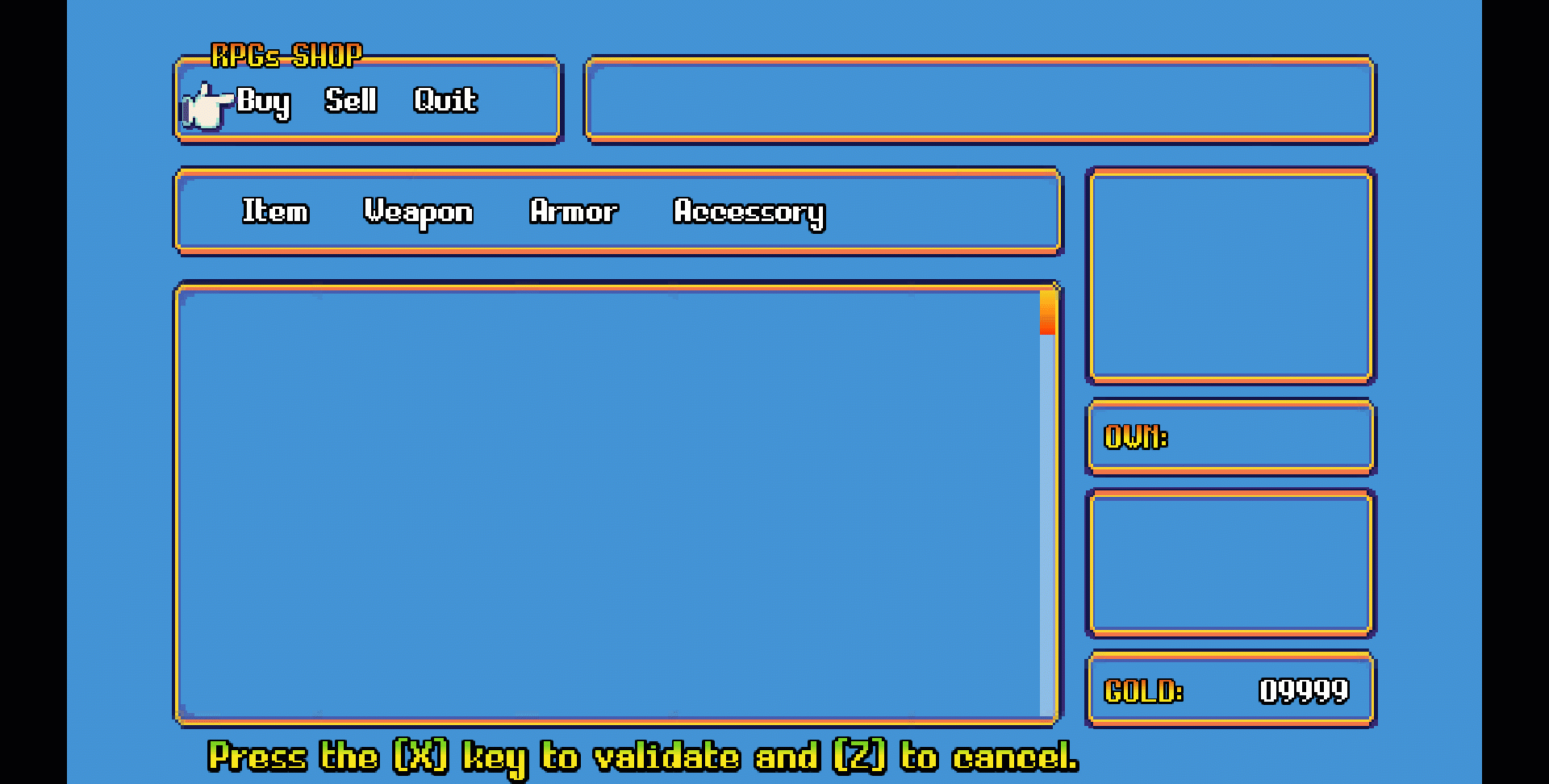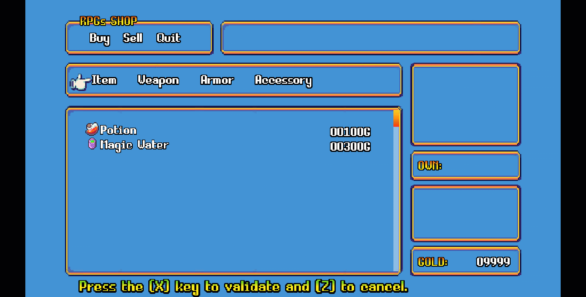 This template demonstrates how to manage a fully data-driven inventory, item selection with a cursor-based UI, and a complete shop flow (buy & sell) — all powered by arrays and structured variables, without hardcoded logic or fragile object dependencies.